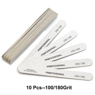 10pcs/Lot Wooden Nail Files Professional Nail Buffer 100/180 limas manicura Block Grey Boat Gel Polishing Wood Sanding Nail Files