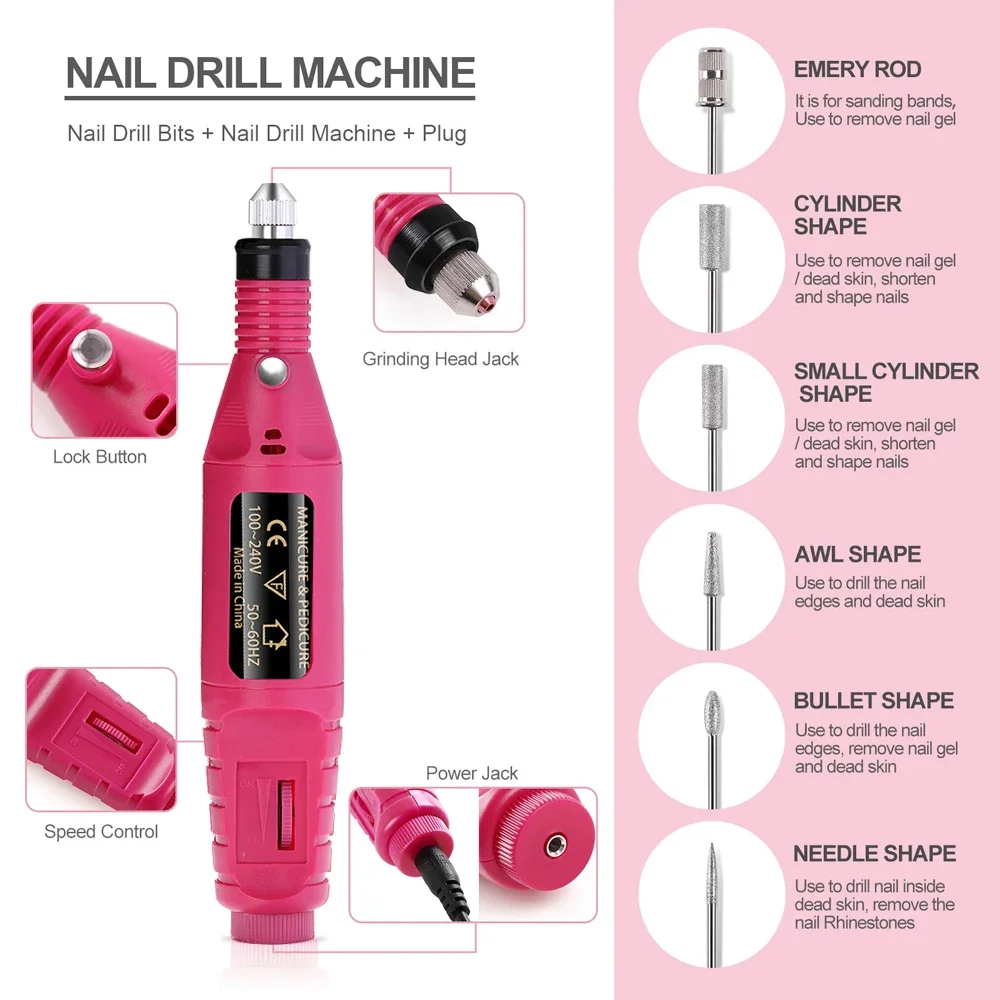 Product Description: Item Name:Nail Fill Drill Grinding Machine Material:Metal + PP Color: Regular Edition(Red/White/Pink/Black/Blue/Green/Red TT) Pro version andPro Max version(Red/White/Pink/Black) Type:Electric Max Speed:20000RPM Power:9W Voltage:100V-240V